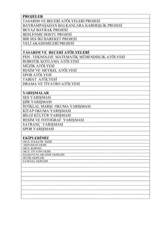 Okulumuzda kurulan ekiplerimiz :